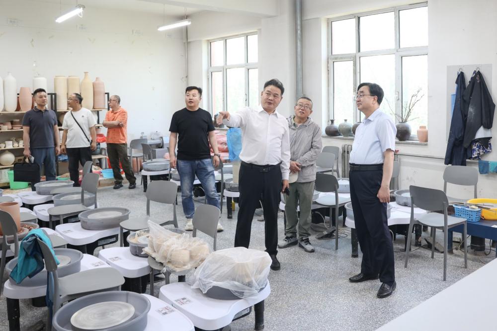 赵水民走访调研了版画工作室、陶艺工作室、辅导员工作室等,深入了解学院教学、科研、学生管理服务等方面情况。就进一步推动本科教育教学审核评估工作,赵水民强调,一要坚持问题导向,组织专项整治行动。学院要认真梳理问题,对照认证标准进行资源整合,持续优化教学资源配置,提升教学质效。要广泛开展卫生、安全大整治,确保师生学习和生活环境的整洁与安全。要深入挖掘和提炼自身优势,加强楼宇文化建设,营造浓厚学术氛围和艺术气息,打造独具学院特色的教育教学品牌。二要坚持学科特色,创造性开展学院工作。学院要围绕教学科研和硕士点建设工作,制定切实可行的计划和措施。要注重学科交叉融合,拓宽学术视野,提升科研水平。要加强与企业和社会的合作交流,为学生提供更多的实践平台,培养具有创新精神和实践能力的高素质艺术人才。三要坚持党建引领,夯实学院政治功能。学院要进一步加强党建工作,充分发挥党组织战斗堡垒作用和党员先锋模范作用。通过完善党政联席会议制度,建立书记院长常态化沟通机制,促进党政之间的相互理解、相互支持和相互沟通补台。班子成员要切实履行党风廉政、意识形态、安全稳定等“一岗双责”,推进党建与业务工作深度融合,推动学院各项工作协调发展。