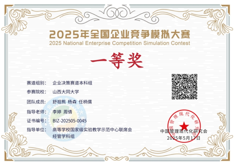 近年来,商学院始终坚持以培养创新型、应用型人才为目标,将继续鼓励和支持学生参与各类竞赛,并进一步加强师资队伍建设,为培养出更多具有创新精神和实践能力的高素质应用型人才贡献力量。(来源:商学院 责编:赵鑫)