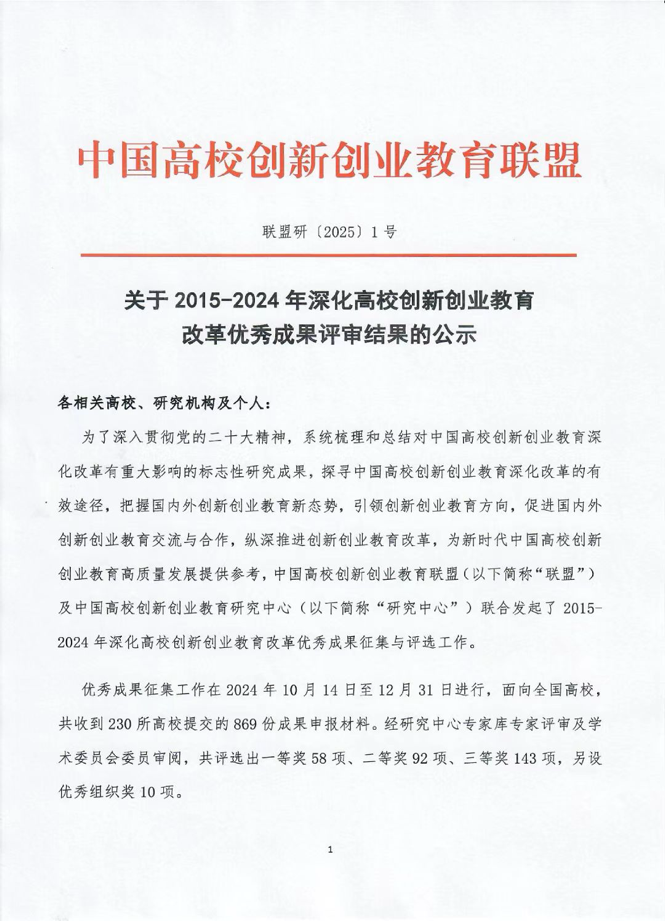 学科竞赛是商学院培养应用型人才的重要途径。学院紧盯《全国普通高校大学生竞赛分析报告》(84项)有关商学的比赛,以赛促教,鼓励师生积极参与各项创新创业类竞赛并取得亮眼成绩。5月28日,由中国高校创新创业教育联盟主办,全国230所高校参与的“2015—2024年深化高校创新创业教育改革优秀成果”公布评选结果,学院史建雄教学团队的《创业基础》课程荣获“优秀课程”二等奖,取得历史新突破。
