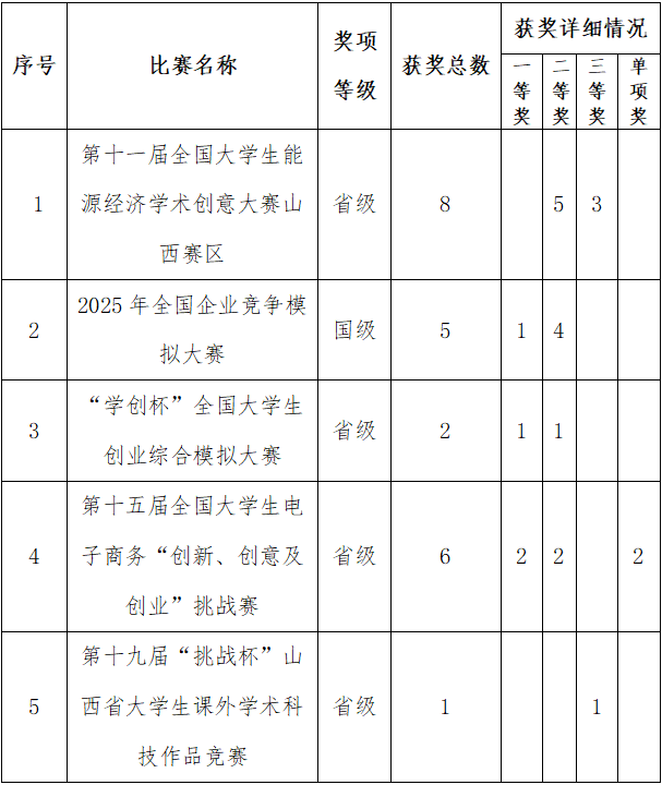 同时,商学院组织学生参与了5场在《全国普通高校大学生竞赛分析报告》(84项)中的比赛,成绩亮眼,成果丰硕。学院共获得国家级奖项5个,省级奖项15个和2个单项奖。这些成绩充分展示了商学院学子扎实的专业素养和出色的创新能力。