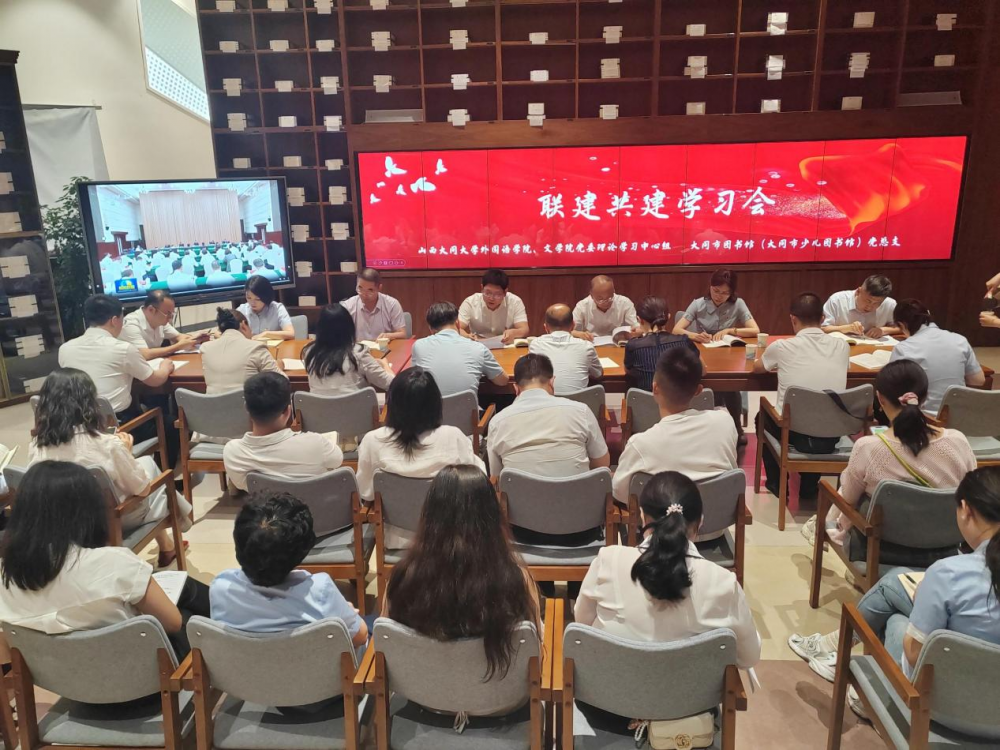 6月18日,文学院、外国语学院党委理论学习中心组与大同市图书馆党支部在大同市图书馆北魏文献馆召开联组共学会议。文学院、外国语学院党委理论学习中心组全体成员、科级干部、党支部书记、专职辅导员参加学习。大同市图书馆党支部委员参加此次学习,同时开展联学共建,围绕主题进行研讨交流。
