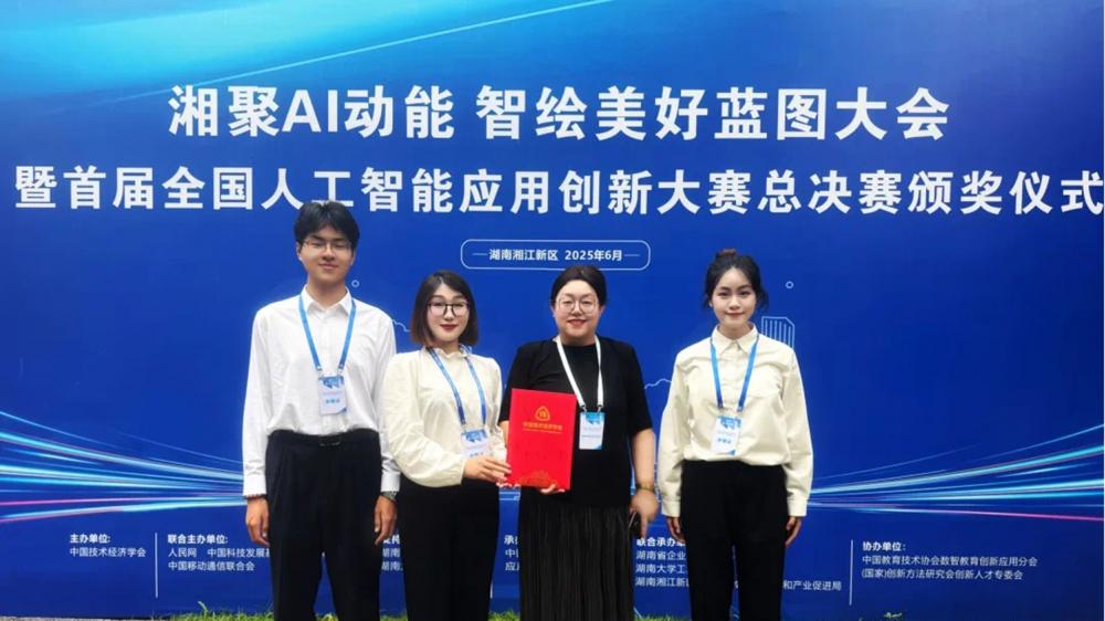 6月22日,2025首届全国人工智能应用创新大赛总决赛在湖南落幕,本届大赛由中国技术经济学会主办,中国技术经济学会人工智能应用专委会承办,吸引632所高校、近200家企业踊跃参与。在与675个晋级总决赛项目同台竞技中,由马玉玲、李雨倬、任育靓组成的中医药健康服务学院杏林智创团队,在卢涛、夏晓艳老师的悉心指导下,凭借“基于千帆Agent的中医体质辨识与养生方案生成系统”脱颖而出,荣获特等奖。