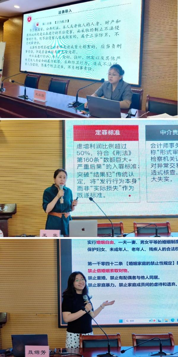 以案释法,解锁法律实践密码。庞云霞老师以《人民的正义——正当防卫热点案件分析》为主题,系统阐释正当防卫制度中时间要件、起因要件、主观要件、对象要件及限度要件的规范内涵,通过深度解析邓玉娇故意伤害案、昆山于海明正当防卫案等典型争议案件,聚焦司法实践中的疑难问题,梳理正当防卫认定的价值基准与裁判规则,彰显人民群众正义观对案件判决的影响和对司法公正的推动作用。庞云霞老师将正当防卫制度剖析与法治精神培育、社会正义引导深度融合,以法理阐释明晰制度内核,以价值思辨厚植法治信仰。