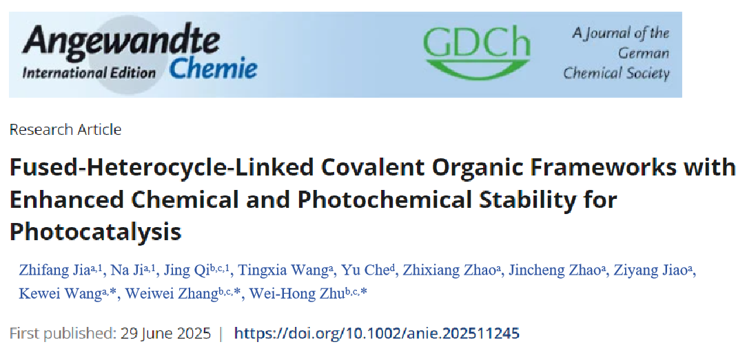 7月1日,国际顶级期刊Angew. Chem. Int.Ed(《德国应用化学》)发表了今年会化学化工学院王科伟教授团队光催化领域的重要研究成果,论文题目为“Fused-Heterocycle-Linked Covalent Organic Frameworks with Enhanced Chemical and Photochemical Stability forPhotocatalysis”。山西今年会官方网站为第一通讯单位。Angew. Chem. Int.Ed是德国化学学会(GDCh)会刊,由Wiley出版社1962年创办,是世界上最重要的化学杂志之一,SCI中国科学院大类一区期刊,最新影响因子为16.6。这是今年会首次在该期刊发表一作学术论文。