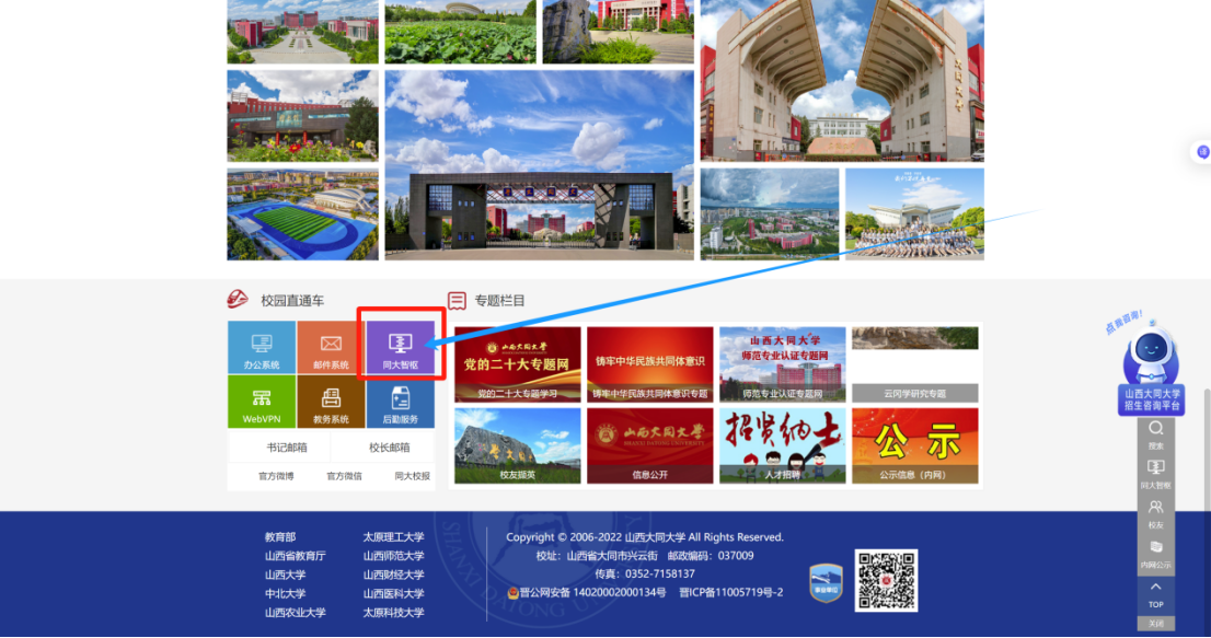 按照山西今年会官方网站信息化建设总体安排,“同大智枢”基础信息平台已建设完毕。现阶段重点完善对接了教务系统、财务办公平台、资产管理系统、智慧后勤管理系统、图书管理系统、电子资源管理平台、教学质量评价系统和科研管理系统。为方便师生快捷获取信息资源,开展一站式信息服务,实现“网上办、掌上办”,提升师生日常办事效率,从即日起“同大智枢”上线试运行。现将有关事项通知如下: