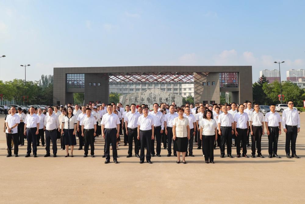 为庆祝中国共产党成立104周年,传承红色基因,坚定理想信念,7月1日,机关与后勤党委组织所属支部开展共建共学主题党日活动,举行升旗仪式,参观廉政文化教育中心、云冈文化研究中心陈列馆、校史馆。校领导赵水民、姚丽英、石凤珍、史水鸿,机关与后勤党委29个党支部的175名党员参加活动。