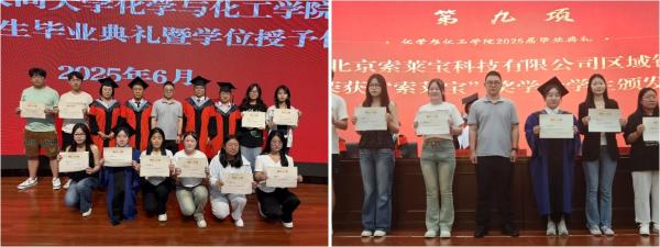 6月12日上午,化学与化工学院特邀原北京索莱宝科技有限公司总经理高阳出席2025届学生毕业典礼暨学位授予仪式,为优秀毕业生颁发索莱宝奖学金,并做成长经验分享交流。化学与化工学院党委副书记张秀娟主持。