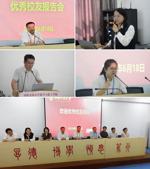 6月18日上午,化学与化工学院在明达楼二楼报告厅举办优秀校友经验分享会,会议诚邀太原理工大学化学与化工学院院长吴旭,吕梁学院肖桂英博士和王建军博士,山西农业大学副教授梁瑜博士回学院做成长经验分享指导。化学与化工学院党委副书记张秀娟主持。
