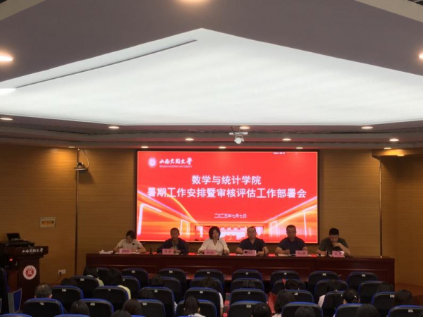 为统筹推进暑期各项工作有序开展,扎实做好审核评估准备工作,7月7日上午9时,数学与统计学院在行知楼228会议室召开暑期工作安排暨审核评估工作、第三学期实践教学工作部署会。学院全体教师参会,会议由院长刘有军主持。