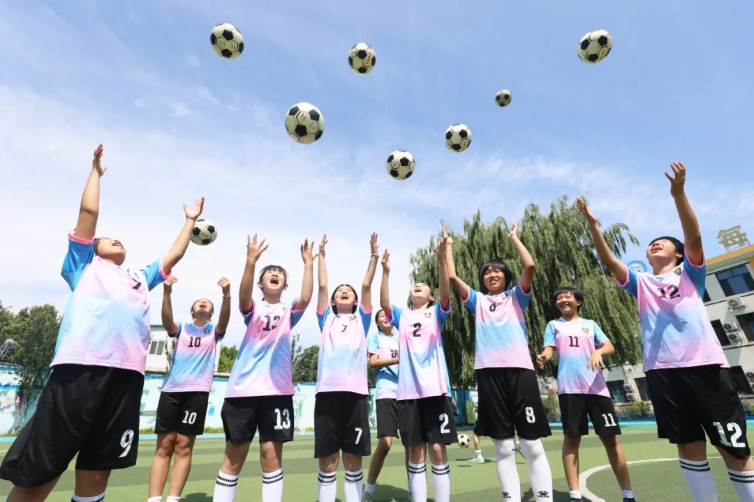 河北省唐山市丰润区西实验小学女足队员进行训练。朱大勇摄