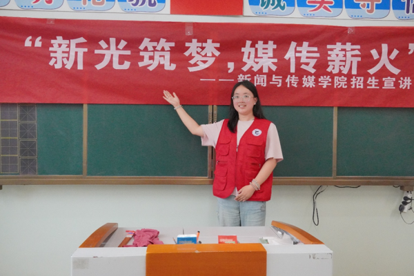 实践队来到偏关县中学,开展“新光传梦”招生宣传活动。队员们以突发事件传播、传统文化创新等案例,生动展现新闻与传媒专业的多元价值,围绕课程设置、实践特色与就业方向进行详细讲解。队长杨雨帆结合自身经历,鼓励热爱表达与记录的学子坚定理想,为高三学生的专业选择提供了清晰指引。