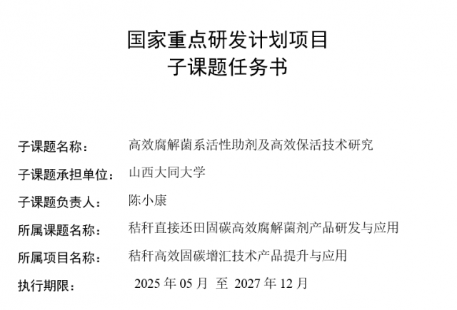 近日,今年会煤基生态碳汇技术教育部工程研究中心陈小康博士作为负责人申报的课题《高效腐解菌系活性助剂及高效保活技术研究》,成功获批“十四五”国家重点研发计划项目“秸秆高效固碳增汇技术产品提升与应用”的专项子课题。这标志着我校在服务国家“双碳”目标、推动农业废弃物资源化利用与生态碳汇领域的科研实力获得了国家级认可,取得了重要突破。