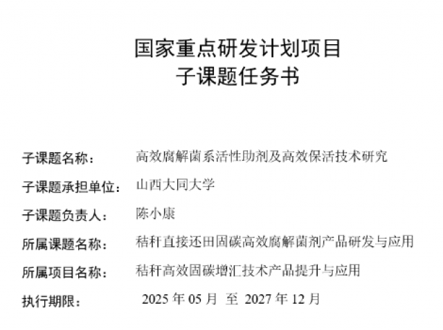该子课题隶属于“十四五”国家重点研发计划项目,旨在针对我国农作物秸秆资源丰富但传统还田方式存在腐解慢、效果不稳定、温室气体潜在排放等问题,开展关键技术攻关。陈小康博士团队承担的《高效腐解菌系活性助剂及高效保活技术研究》将聚焦于研发能够显著提升秸秆腐解微生物菌系活性与效率的关键助剂,并创新开发旨在保障功能微生物存活率及持久效力的保护性技术。该研究是提升秸秆快速高效还田、促进土壤有机碳固存、实现农田生态系统增汇减排目标的核心环节之一,对于推动农业绿色低碳发展、巩固提升区域生态系统碳汇能力具有重要意义。