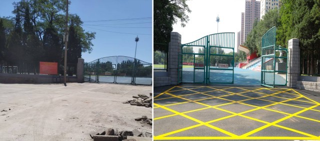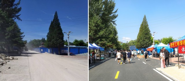 体育场门前道路改造前后
