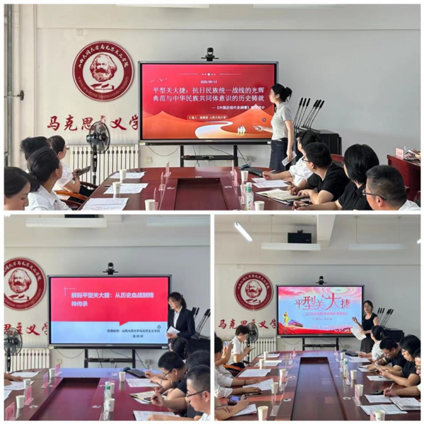 为深入学习贯彻习近平总书记在纪念中国人民抗日战争暨世界反法西斯战争胜利80周年纪念活动上的重要讲话精神,9月12日下午,马克思主义学院于本真楼C503会议室联合平型关大捷纪念馆开展“抗战精神融入思政课”集体备课会。平型关大捷纪念馆讲解人员,学院思政课教师代表和学生代表参会。