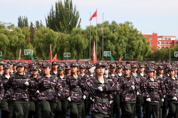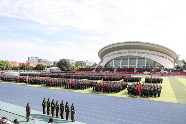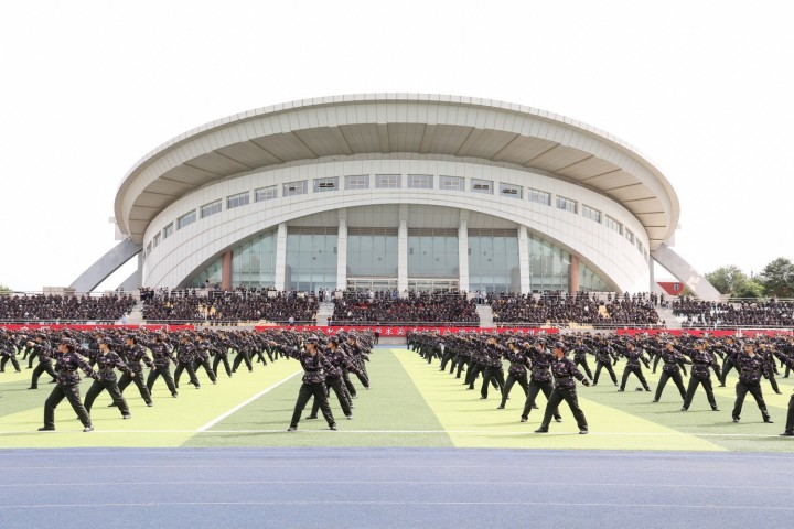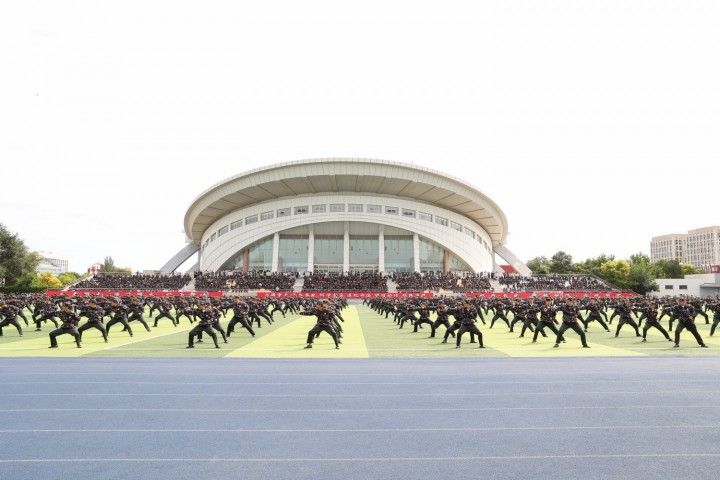 9月21日,jinnianhui今年会2025级新生军训成果汇报暨总结表彰大会在天翔体育场举行。