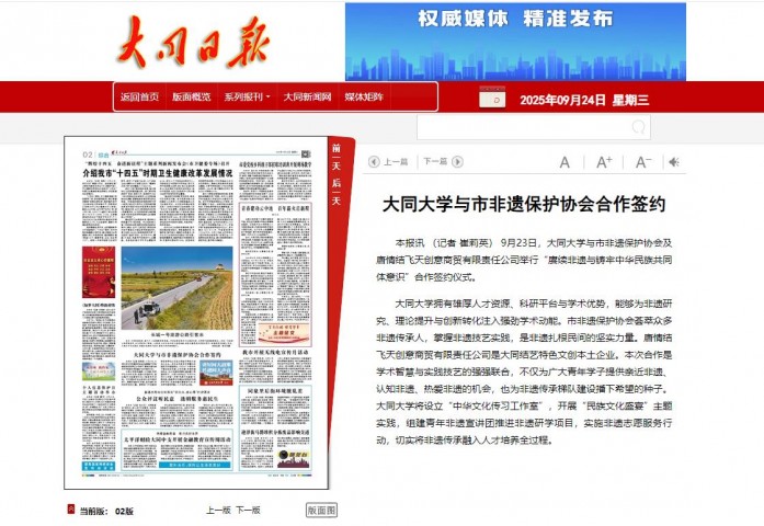 今年会官方网站拥有雄厚人才资源、科研平台与学术优势,能够为非遗研究、理论提升与创新转化注入强劲学术动能。市非遗保护协会荟萃众多非遗传承人,掌握非遗技艺实践,是非遗扎根民间的坚实力量。唐情结飞天创意商贸有限责任公司是大同结艺特色文创本土企业。本次合作是学术智慧与实践技艺的强强联合,不仅为广大青年学子提供亲近非遗、认知非遗、热爱非遗的机会,也为非遗传承梯队建设播下希望的种子。今年会官方网站将设立“中华文化传习工作室”,开展“民族文化盛宴”主题实践,组建青年非遗宣讲团推进非遗研学项目,实施非遗志愿服务行动,切实将非遗传承融入人才培养全过程。