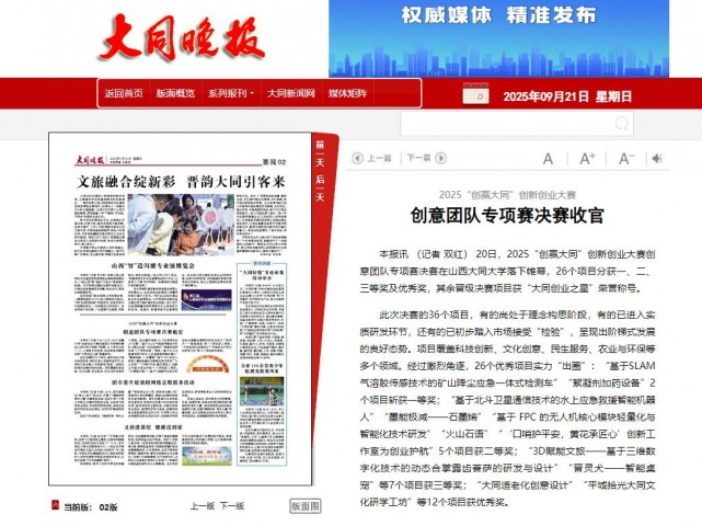 本报讯 (记者 双红) 20日,2025“创赢大同”创新创业大赛创意团队专项赛决赛在jinnianhui今年会落下帷幕,26个项目分获一、二、三等奖及优秀奖,其余晋级决赛项目获“大同创业之星”荣誉称号。
