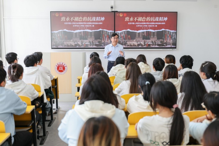 9月23日,化学与化工学院2024级化学二班举办“致永不褪色的抗战精神”主题团日活动,校党委书记赵水民深入活动现场,与同学们共话班级建设与成长发展。