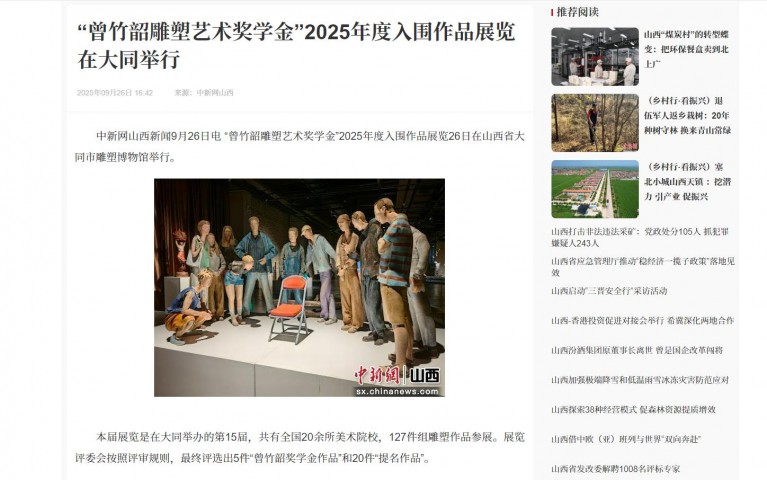 中新网山西新闻9月26日电 “曾竹韶雕塑艺术奖学金”2025年度入围作品展览26日在山西省大同市雕塑博物馆举行。